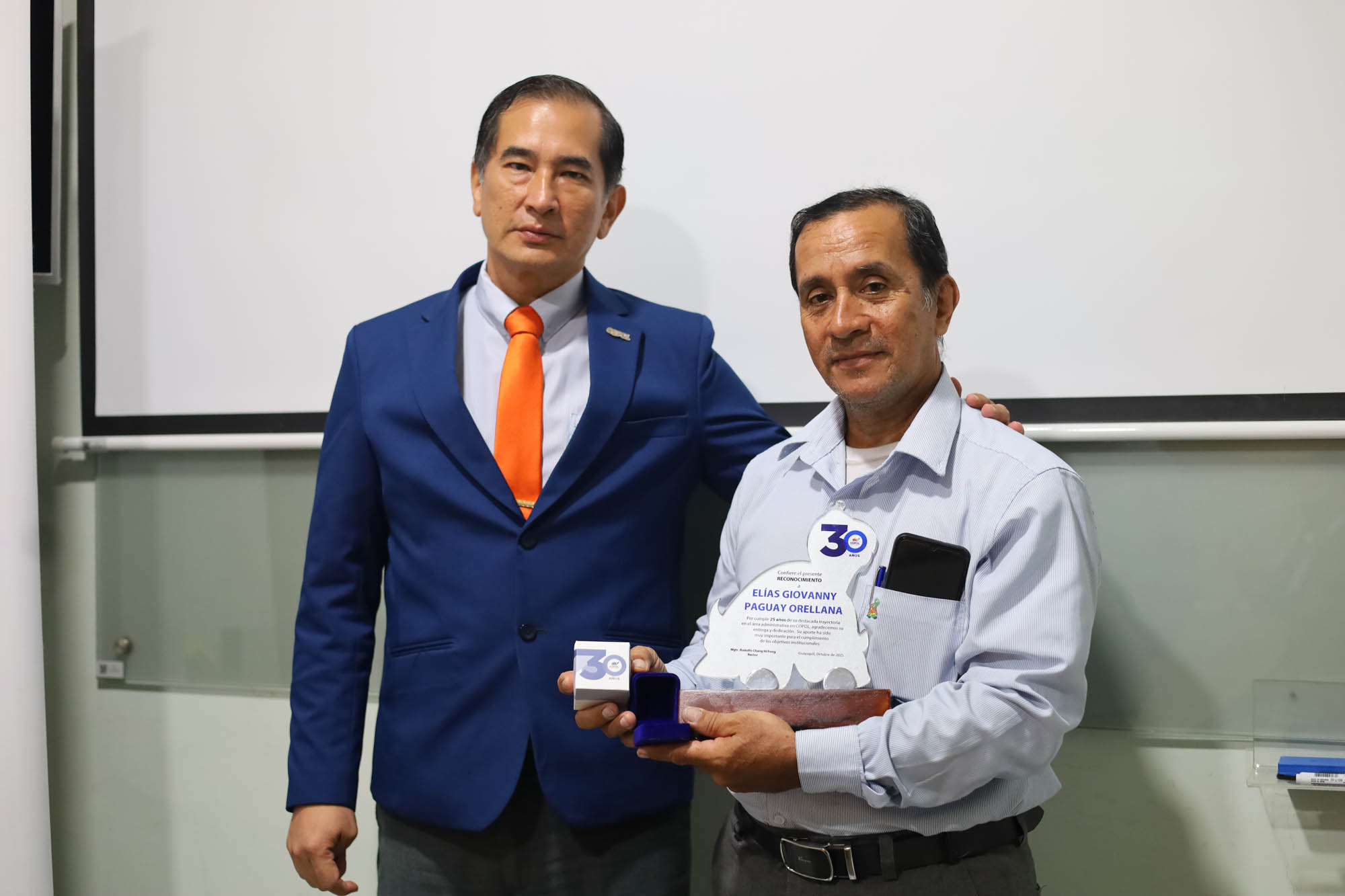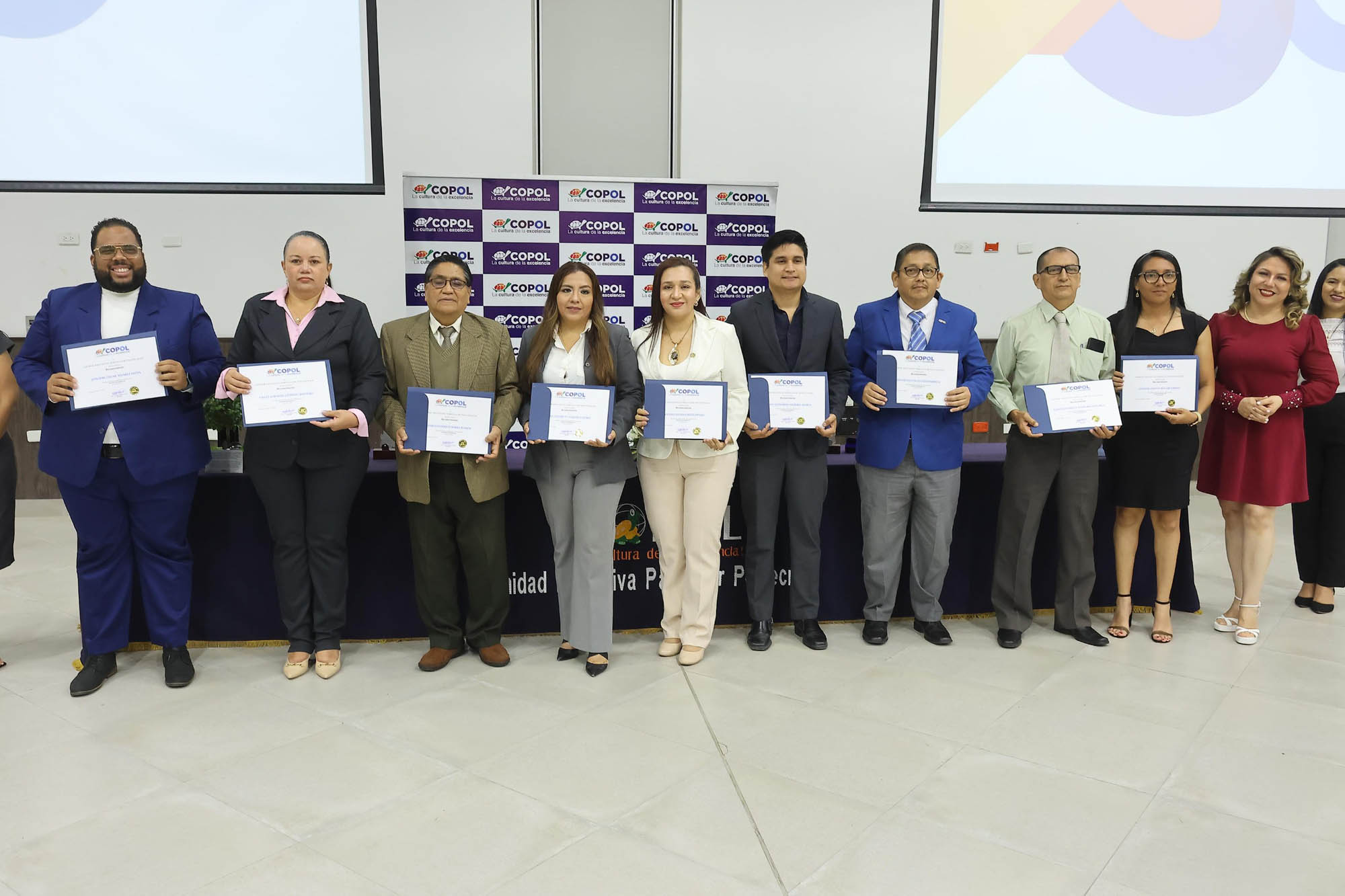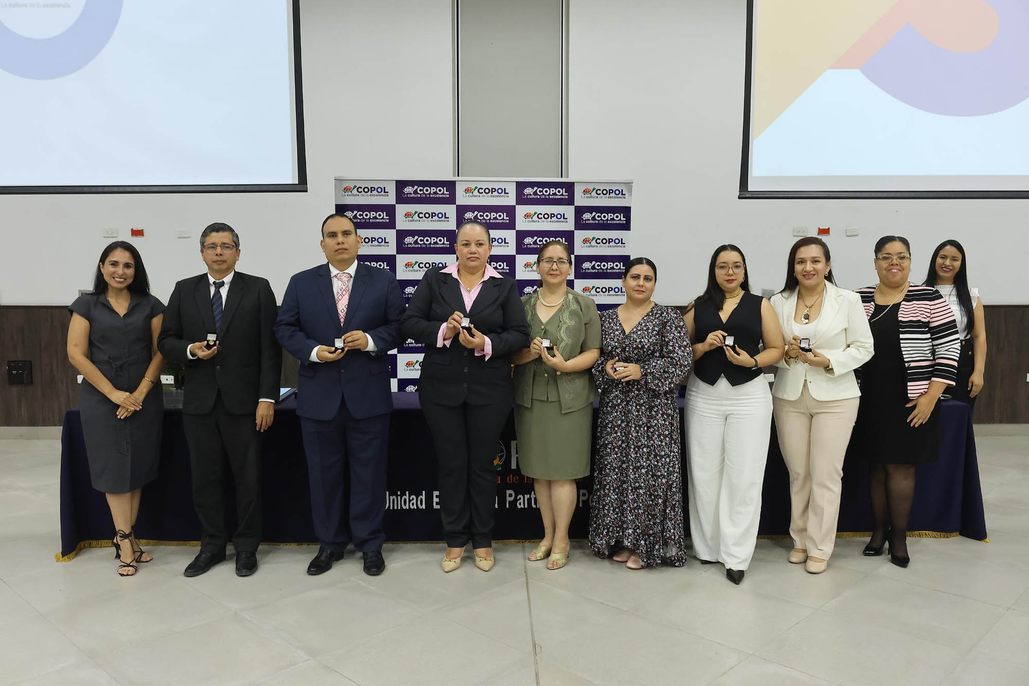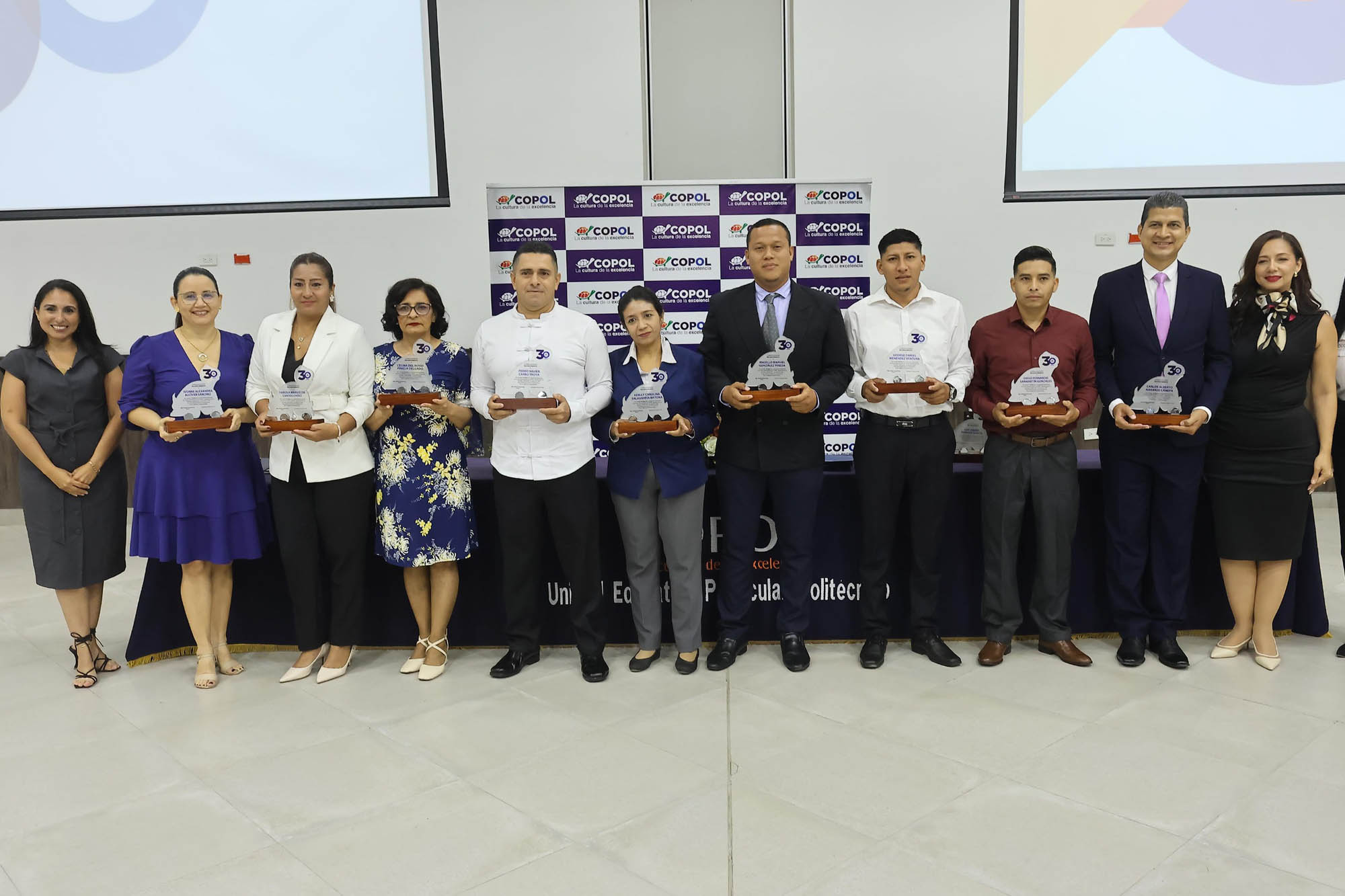 Durante la ceremonia se entregaron reconocimientos y premiaciones a docentes, personal administrativo y de apoyo por su vocación, liderazgo y años de servicio, además de destacar a los equipos académicos que posicionaron a COPOL por encima de la media mundial en los programas del Bachillerato Internacional.