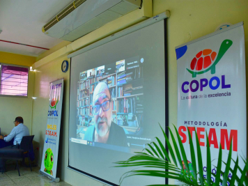 Las autoridades de la Institución también estuvieron conectadas a este conversatorio. Entre ellas el rector de COPOL, Magíster Rodolfo Chang, quien se mostró agradecido por este encuentro, “no solo para que nuestros jóvenes conozcan un poco más de la obra, sino que conozcan al ser humano que hay detrás. A este ser humano, que al igual que los personajes, también los puede inspirar…”.