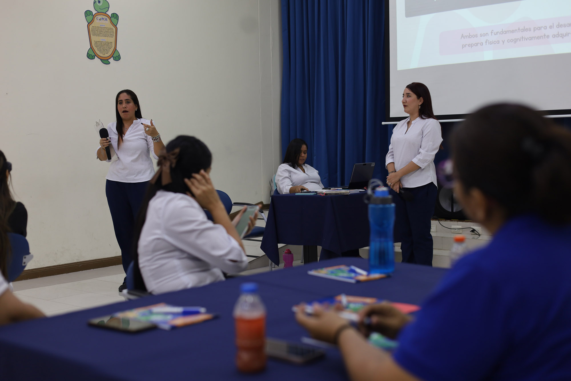 El auditorio de Primaria fue el escenario que congregó a profesoras de distintas instituciones educativas del Distritito 09D09, Zona 8, al que pertenece COPOL, quienes escucharon con atención importantes conceptos y reflexiones: